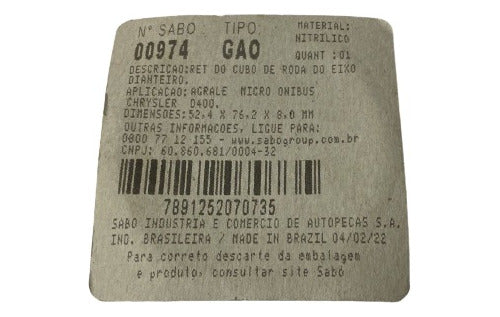 Retentor Do Cubo De Roda Dianteiro Sabo - 00974gao